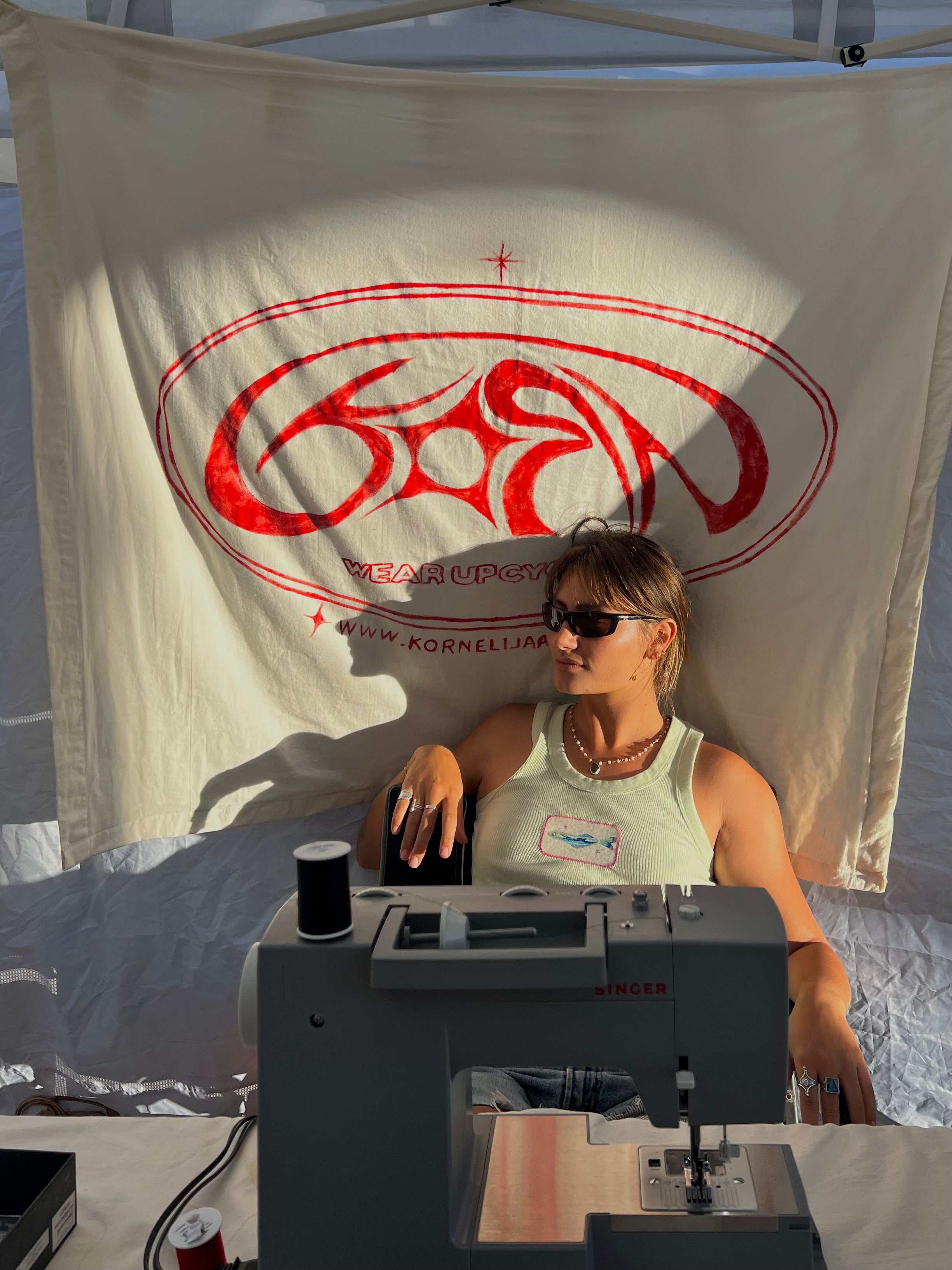 Kornelija (Korn-eel-eeyuh), a.k.a "Korn," is a clothing designer who creates unique, one-of-one pieces by upcycling secondhand garments. Her mission is to shift consumer behavior in a world where everything feels disposable, encouraging people to buy less and cherish more.